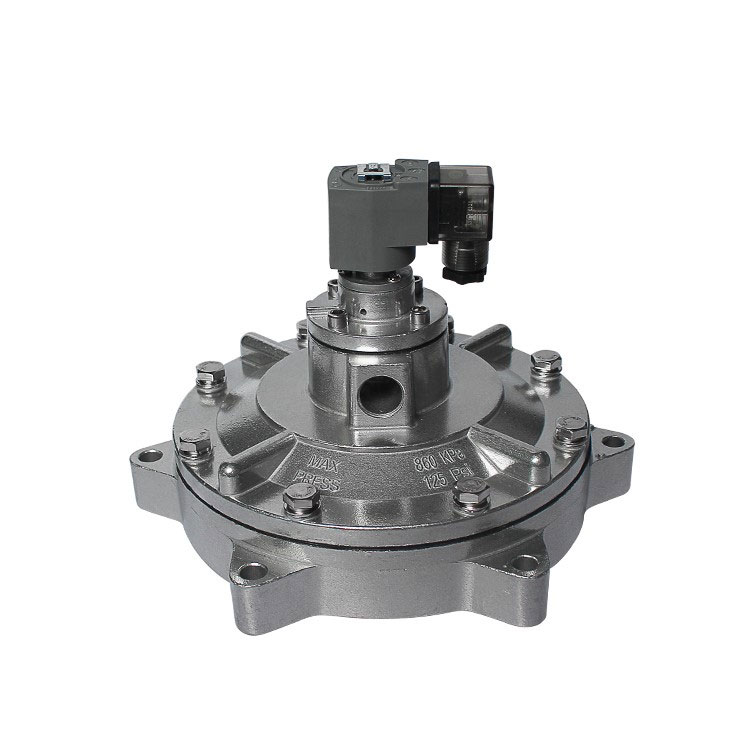 Seine Besonderheit besteht darin, dass die Lufteinlass- und -auslassrohre des Eckventils im 90°-Winkel verlaufen. Der Ventilkörper und die Haube sind aus Aluminiumlegierungsmaterial druckgegossen. Nach der Oberflächenbehandlung weisen sie eine hervorragende Korrosionsbeständigkeit auf. Die Membran und die Dichtung werden im vulkanisierten Verbundverfahren hergestellt. Die Rohstoffe für den elektromagnetischen Pilotkopf bestehen aus hocheffizienten magnetischen Materialien und magnetischen Abschirmmaterialien aus Edelstahl. Kritische Komponenten wie Federn und Befestigungselemente bestehen aus Edelstahl. Verbindungsmethode: Das Luftverteilerrohr (Lufttank) und das Blasrohr des Staubsammlers werden in den Einlass bzw. Auslass des Ventils eingeführt und an beiden Enden durch Überwurfmuttern abgedichtet.